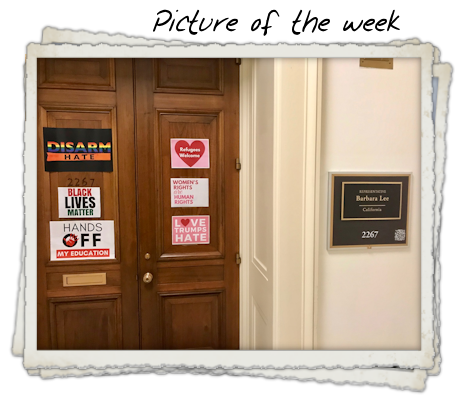 ![]() In my trip to Washington, I could not help but be favorably impressed by the exterior of Rep. Barbara Lee’s office in the Cannon Office Building on Capitol Hill. She gives life to the staid officious atmosphere present in most of the rest of the building, the location of many US congressional offices. |