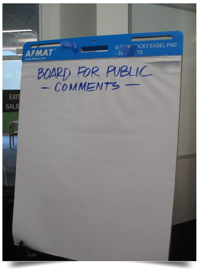 Did the Public Comment opportunity ever happen????? I could not stay the entire day to participate, but I did take advantage of the Public Comment “island of opportunity”. It was blank when I arrived, even though I was informed that a member of the public had been there earlier and wrote comment on the tablet.