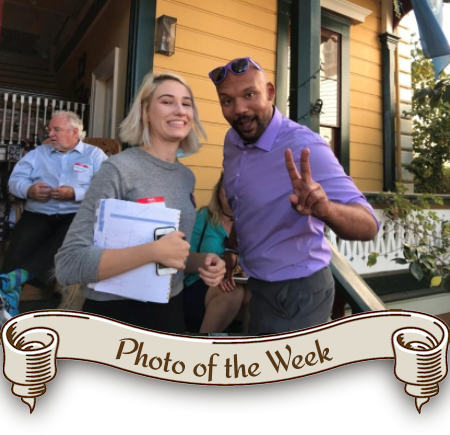 ![]() Drew Glover and his campaign manager, Juliette Lyon in a fun moment this past Sunday (10/15) when Drew hosted a “Campaign 2018” brunch. He’s officially running for Santa Cruz City Council. Go Drew! |