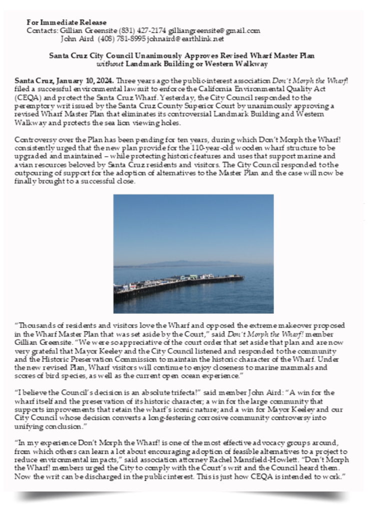 Maybe this vague action is in response to the Sierra Club letter to Soquel Creek Water District Board, stating the PureWater Soquel Project was inadequate in analysis of the impacts the conveyance pipeline attachment to the bridge would have. (See page 10 of the March 5, 2024 Correspondence)
