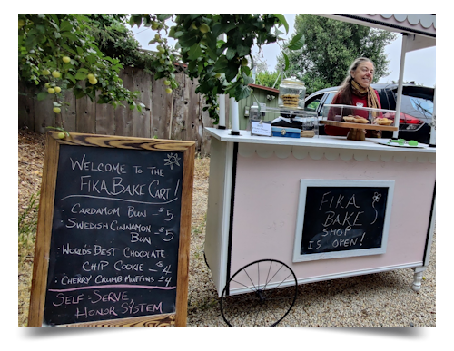 Either way, this is my first summer in Ben Lomond, and I’ve found it to be quite a bit warmer than Aptos! Also, Ben Lomond has Swedish pastries, baked right here! I think I’ve mentioned this before, but it bears repeating: Fika Bakeshop in Ben Lomond is worth visiting! Her schedule changes, but for August, Susan, the proprietess, puts out her bake cart on Thursday mornings at 9am. Stop by, grab a pastry, and leave the money in the tin (or send by Venmo)!
